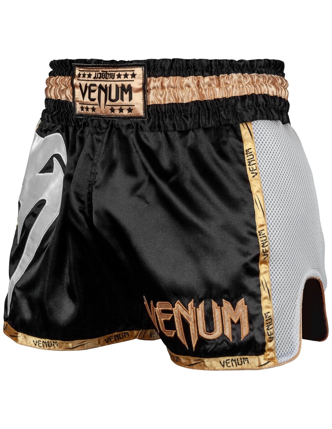 Fabriqué dans la pure tradition thaïlandaise, le short de muay thai Venum Giant se compose d’une matière satinée de haute qualité qui le rend particulièrement résistant